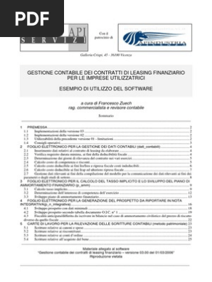 Riscatto Anticipato Leasing | Estinzione Anticipata - CONSULENZA PRO Estinzione anticipata leasing (riscatto anticipato leasing) Si parte da una considerazione banale: per evitare di essere truffati, "basta controllare" la banca. Ovviamente il controllo non deve essere fatto per forza dall'imprenditore o dal privato, può essere chiesto di controllare le proprie posizioni da un esperto consulente di ... Cessione del contratto di leasing: trattamento contabile e fiscale Si auspica comunque un chiarimento ufficiale sul punto. 3. Trattamento contabile della cessione del contratto di leasing e fiscalità diretta. Analizziamo ora il trattamento contabile della cessione del contratto di leasing e le conseguenze in punto di imposizione sul reddito, distinguendo tra cedente imprenditore e professionista e cessionario. contratto di noleggio con riscatto fac simile contratto di noleggio con riscatto fac simile Ricette Pollo Autunno , Oratorio Estivo 2021 Milano , Muffin Salati Benedetta , Ciabatte Bambina Invernali , Volkswagen California Usato Trento , Torta Con Crema Mascarpone E Panna , Migliorare Audio Macbook Air , Spaghetti Alle Vongole Di Benedetta Rossi , Prosciutto Crudo San Daniele Valori ...