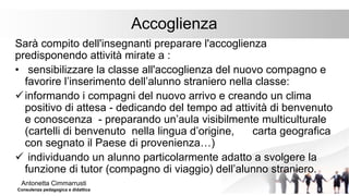 Come accogliere un nuovo alunno? - VIE MAESTRE VI invitiamo a preparare un semplice cartellone di benvenuto con il nome del nuovo bambino ed un pensiero accogliente da parte di ciascun compagno: dopo le prime settimane, il nuovo arrivato potrà portarlo a casa e tenerlo come ricordo. Se avete bisogno di qualche idea per l'accoglienza: Condividi: