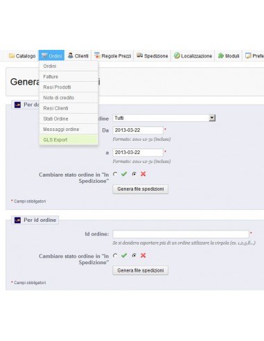Modulo esporta spedizioni GLS Web Labelling per Magento 2